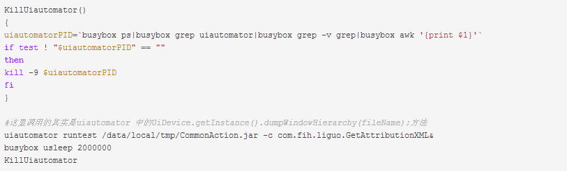 在使用uiautomator dump过程中发现,有时会发生uiaumator进程死锁,导致我的测试脚本卡死,不再继续执行,这里我通过shell判断,如果2秒钟后,进程仍在,将它杀掉: