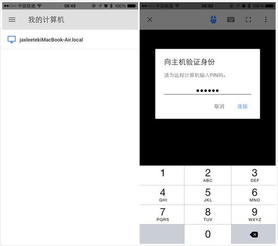 如果想随时随地的控制电脑桌面,则需要使用手机来进行远程连接了。启用连接之后,需要用户设定一个6位的PIN码,这个码是固定的,所以不需要每次都输入。之后要保持电脑没有进入休眠状态,然后在手机上打开Chrome Remote Desktop,登陆同一个Google账户,选择自己的电脑,输入PIN码可以进行远程控制了。