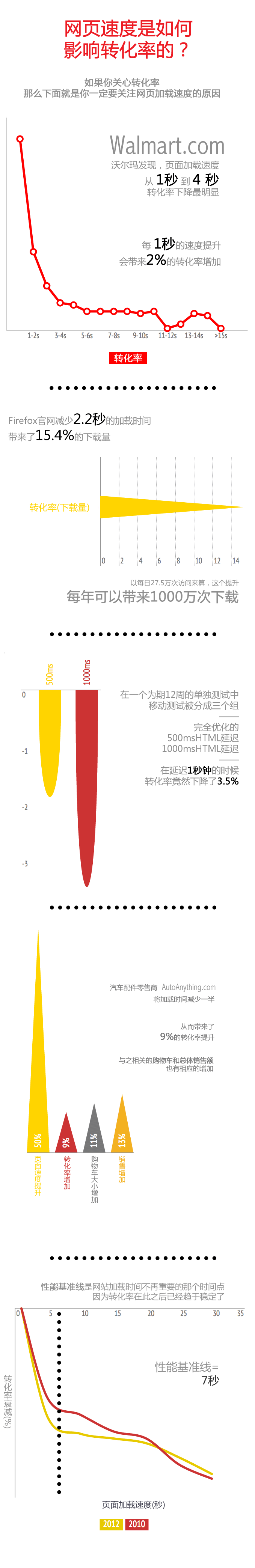我们一直很重视网站性能优化,在人才培养和招聘的时候也都非常重视,但性能优化到底为什么这么重要?对电商网站来说,性能优化对转化率的影响是实实在在的,也是非常有说服力的,这是国外同行webperformancetoday的研究成果,简单翻译一下分享给大家。