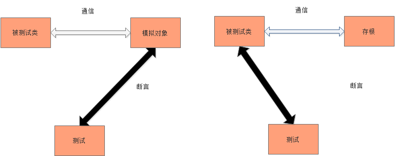 它们二者其他都是伪对象。二者根本的区别是存根不会导致测试失败,而模拟对象可以。即存根不参与断言,而模拟对象参与断言。