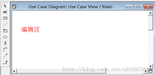 学习完了这些理论基础之后,真正的到自己动手了,用RationalRose 来画图,安装好之后自己迫不及待的试了试,毕竟在用例图中的小人还是挺吸引人的,在编辑区右侧的图形工具栏可以满足我们的各种需求,直接可以进行拖动添加,这也是我喜欢RatinalRose的原因之一。
