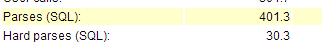 Hard parses --硬解析sql 一个CPU大概能支撑10个左右的Hard Parses(SQL),平均30个硬解析sql占用3个CPU