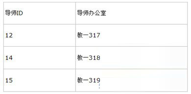 (2)之所以是要符合第三范式,是为了避免太多重复的内容,例如对于导师ID为12的,该表里面有两条重复的,以后如果ID为12的导师更换办公地址,那么需要对表中ID为12的导师办公地点全部进行更新,虽然数据量少的时候update一下花不了多长时间,可是万一有好多好多条,更新起来,估计死的心都有了。