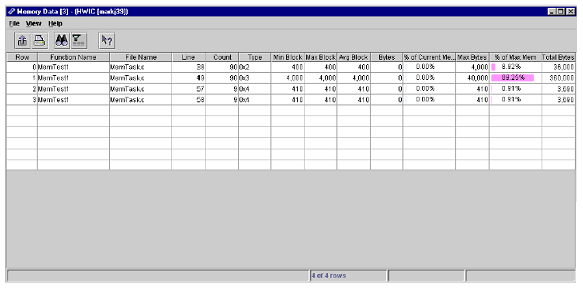 (3)动态内存分配分析:在CODETEST 诞生之前,动态地存储器分配情况是难以追踪观测的。CODETEST的分析能够显示有多少字节的存储器被分配给了程序的哪一个函数。这样不难发现那些函数占用了较多的存储空间,那些函数没有释放相应的存储空间。测试者甚至还可以观察到存储体分配情况随着程序运行动态的增加和减少,即CODETEST 可以统计出所有的内存的分配情况。随着程序的运行,CODETEST 能够指出20 多种内存分配的错误。例如:CodeTEST 可以捕捉“释放空指针(freeing a null pointer)”一样常见的程序错误,报告发生错误的函数和代码行帮,助你尽早发现动态内纯泄漏,而无需到系统崩溃时。