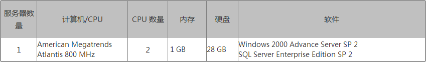 表 3:数据库服务器配置