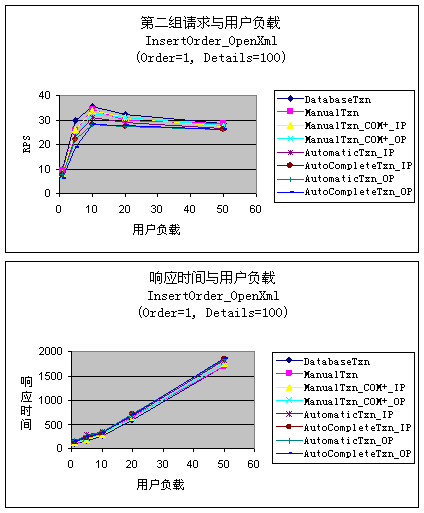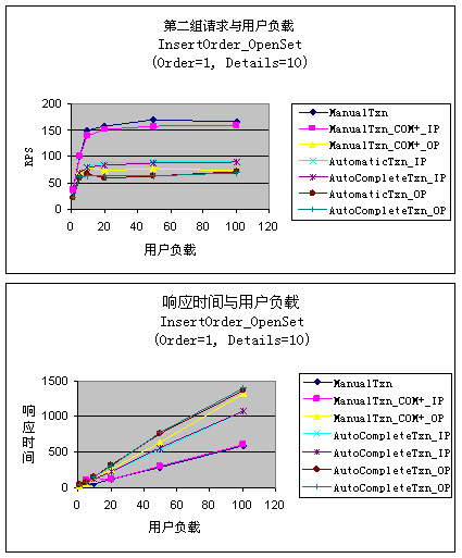 此测试中各个模型的性能都非常接近,这是因为在此事务处理中完成了大量工作(101 次插入)。这里的成本(例如进程间的 DTC 通信和数据封送)被分摊到整个事务处理过程中,因此变得不是那么明显。