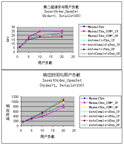 ManualTxn 和 ManualTxn_COM+_IP 的性能非常类似,这是因为与 COM+ 相互操作相关的成本很小。