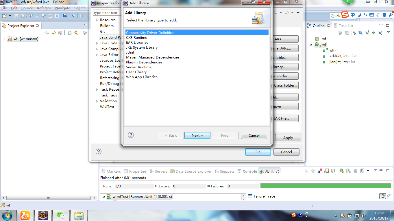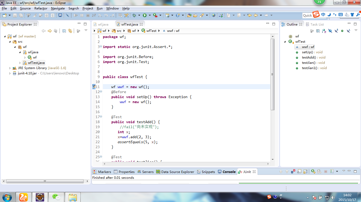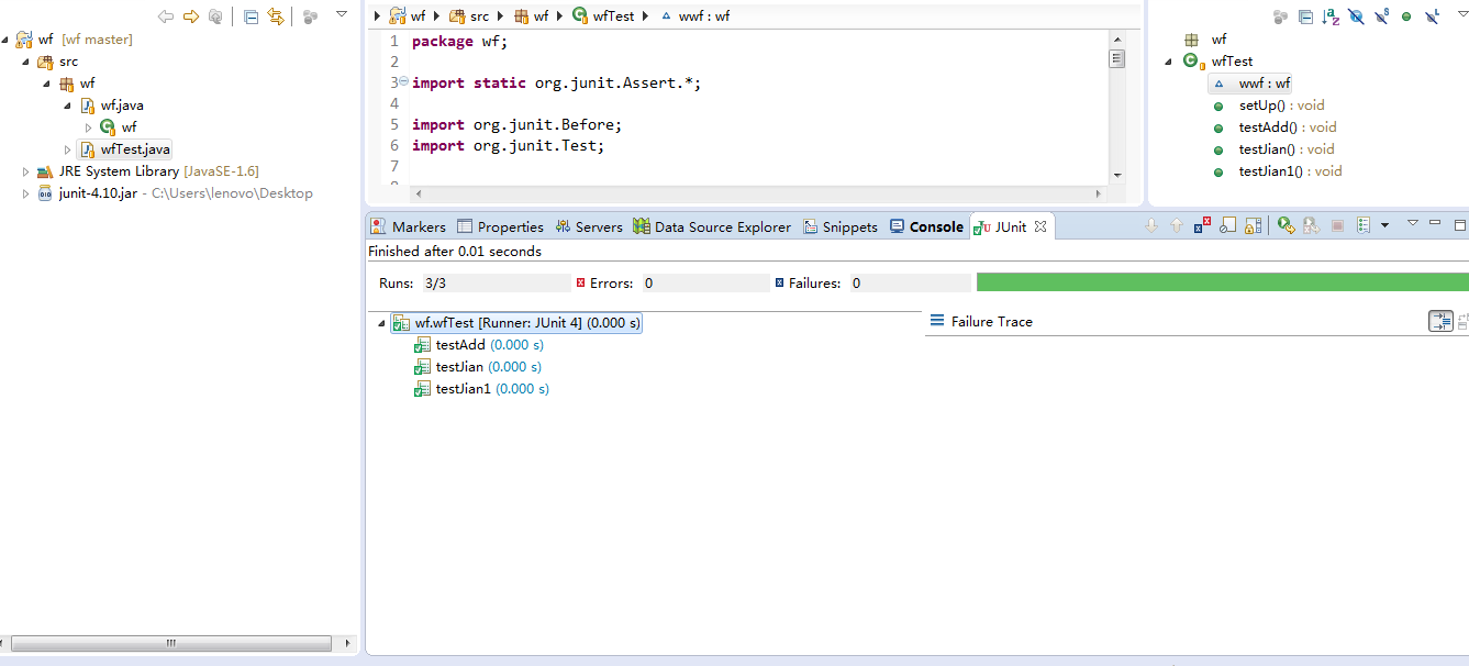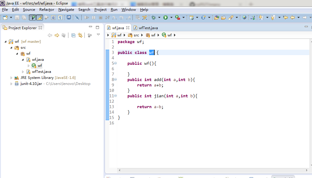 首先创建一个叫wf的项目,在项目下定义wf类,进行加减乘除的计算