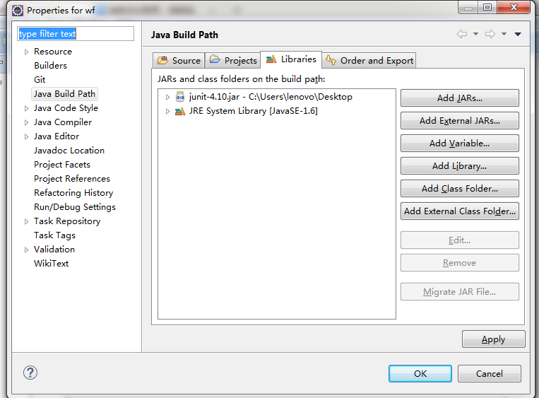 1.将JUnit单元测试包引入这个项目:在该项目上右击点“Properties“生成如下图: