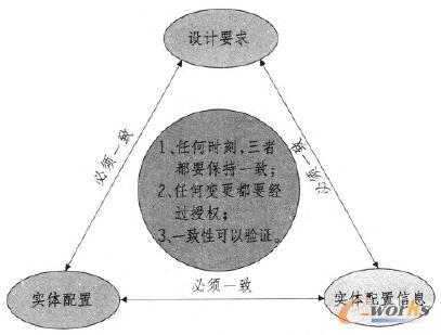 配置管理要求建造、运行、维护和测试实体设施的工作要符合设计文件中的设计要求,并且记录这些实体设施信息的文件要与实体设施实际情况相符合,与设计要求相符合。这些关系可以参照图1: