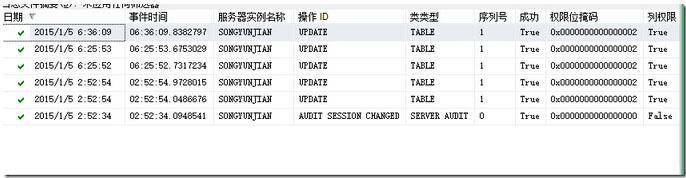 这样可以看到谁在什么时间曾经对该表做过哪些修改。当然除了UI方式,也可以通过T-SQL方式查看审核记录。