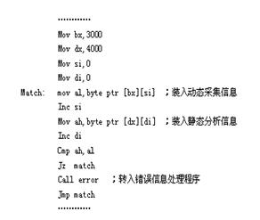 我们将上述设计的测试工具和方法对一段程序进行了实验验证,具体被测程序如下(8086汇编指令, 此处机器码为X=12时的):在这个程序段中包含了两个条件分支和两个无条件分支语句,根据输入的数据X的值决定在哪儿进行条件转移,经过静态分析可以得出以下分析结果:
