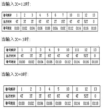 从上面的三种结果表中可以很清楚的看到,程序的执行结果与静态分析结果一致,并且指令执行序列、执行时间与静态分析结果完全相符,因此,可以得出一个结论:该程序满足设计要求。