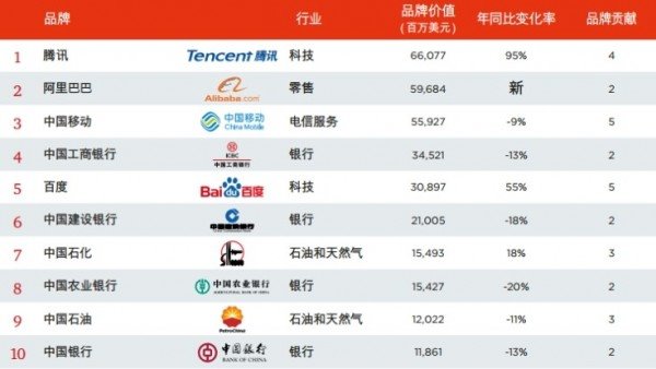 美媒评具价值中国品牌榜:腾讯第一阿里第二