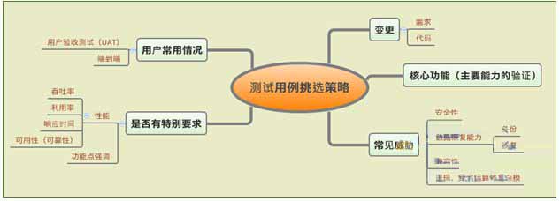 在软件开发过程中,无论是在feature testing还是在final regression testing中,测试策略的好坏在整个质量保证过程中起着至关重要的作用,尤其是在测试资源有限的情况下,影响更为突出。好的测试策略能够更快速的发现软件有value的缺陷,以便team做出快的相应。测试策略包括很多方面,比如环境如何搭建,in scope和out of scope,load and performance testing的基准等等。这次我们只讨论测试策略的一个小的分支,即在我们有测试用例(或者指导做测试的mindmap等)和缺乏测试资源的情况下,如何制定我们的挑选策略,下面是我画的一张mindmap: