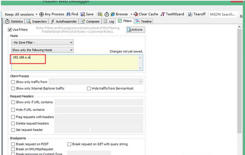 技巧1:设置过滤条件,我们这里设置的是ip,只捕获这个ip的请求,这样方便我们查看数据