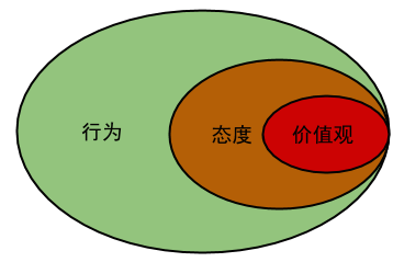 它有外,中,内三层分别为:行为,态度和价值观/信仰,同时内从对反馈的防御大于外层。