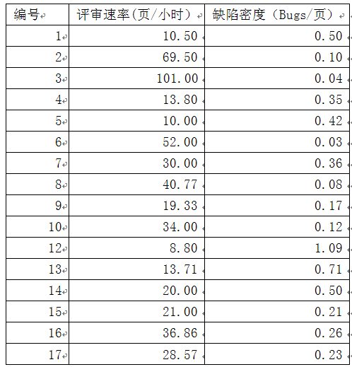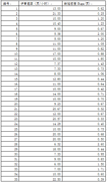 表二:嵌入式软件开发项目的需求评审度量数据