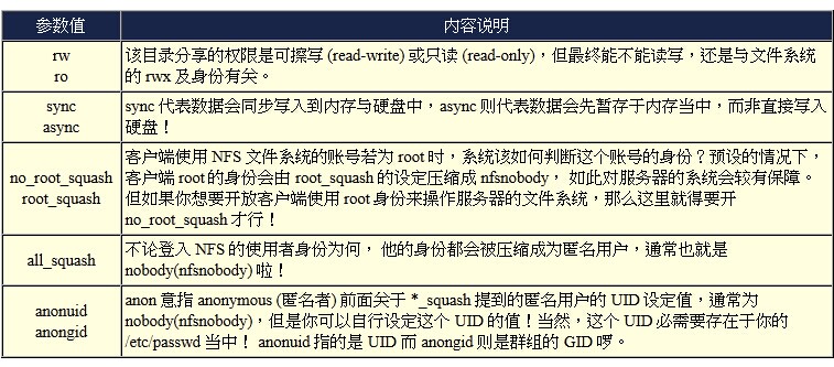 10 # 则 NFS 将默认会使用 sync 的信息而已。你可以不理他,也可以加入 /etc/exports。
