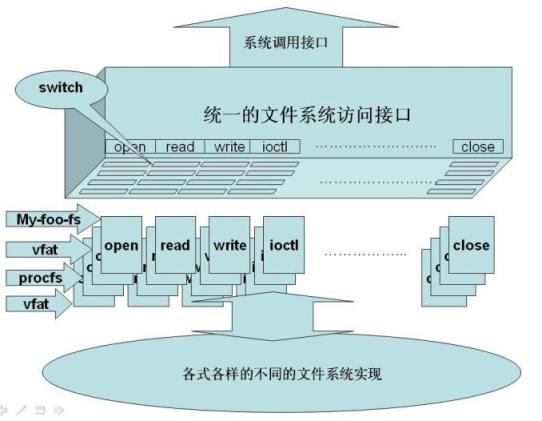 VFS屏蔽了详细文件的实现细节,向上提供统一的操作接口。通过VFS能够实现随意的文件系统,这些文件系统通过文件?问系统调用都能够?问。在操作系统内核中,vfs是对离用户态近期的一层,由于它的存在,linux的使用才变得方便。实际上,正是vfs实现了树形的文件系统组织,然而vfs的作用还不止这些,设备的文件抽象也是通过vfs来实现的。