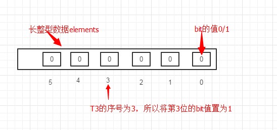 element本来有64个bit,这里简略画了。这里有一个问题,是枚举值的个数超过64个怎么办?超过64个了用EnumSet的另一个实现JumboEnumSet。