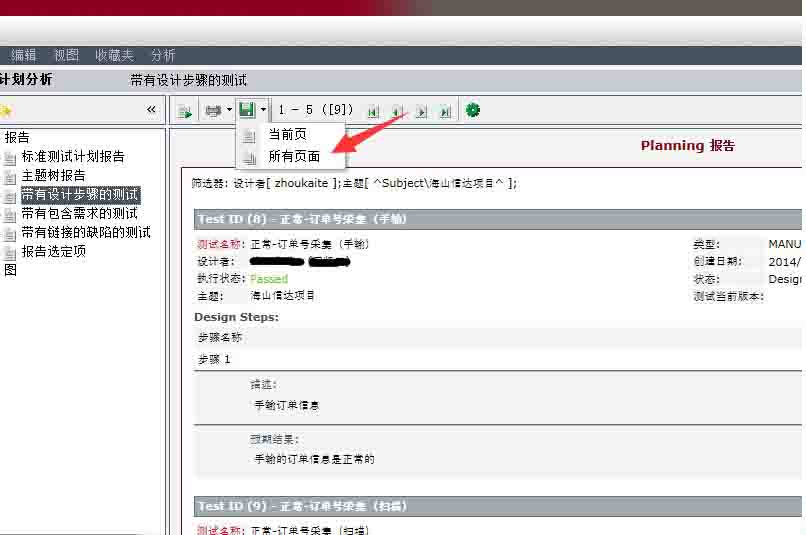 6.系统根据你的筛选条件生成报告,点击保存按钮,选择该项目下的所有页,