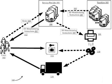 亚马逊在专利申请文件中写道,公司希望打造一套系统,提供按需定制的3D打印服务,从而更快地送货。为了保证速度,3D打印工作有时甚至可以在送货卡车中完成。