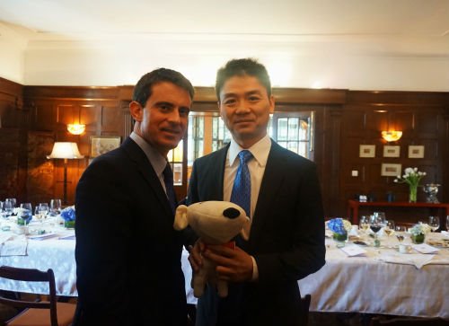 双方的见面气氛十分轻松友好,刘强东将代表京东品牌形象的玩偶“Joy”送给了瓦尔斯总理,Joy象征着京东提倡的“简单快乐”的购物体验,也代表了京东对用户的忠诚。瓦尔斯总理十分赞赏刘强东作为中国年轻一代的创业家带领企业走向国际舞台的传奇经历和积极进取的精神。法国外交部长法比尤斯先生和法国驻华大使顾山先生也参加了午宴。