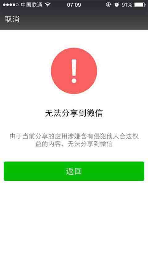 日前网友发现虾米音乐、天天动听、网易云音乐这三个APP音乐分享到微信功能已经失效,当分享虾米音乐、天天动听内容时,微信提示“由于你当前你分享的内容存在安全隐患,无法分享到微信”;分享网易云音乐内容则提醒“由于当前分享的应用涉嫌含有侵犯他人合法权益的内容,无法分享到微信”。