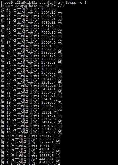 cout << "第 " << j << " 月本利合计为: " << money[j] << " 元