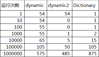 专门做了第三阶段实验,对比dynamic和Dictionary<string,long>