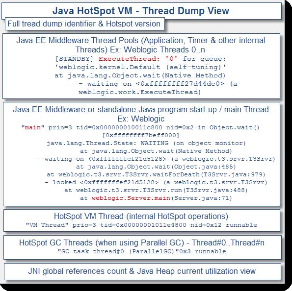 现在通过这个分析样例,给大家详细解释一下HoteSpot上线程堆栈信息中的各个组成部分: