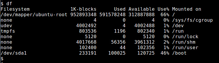 /dev/mapper/ubuntu-root 60514304 1217535 59296769 3% /