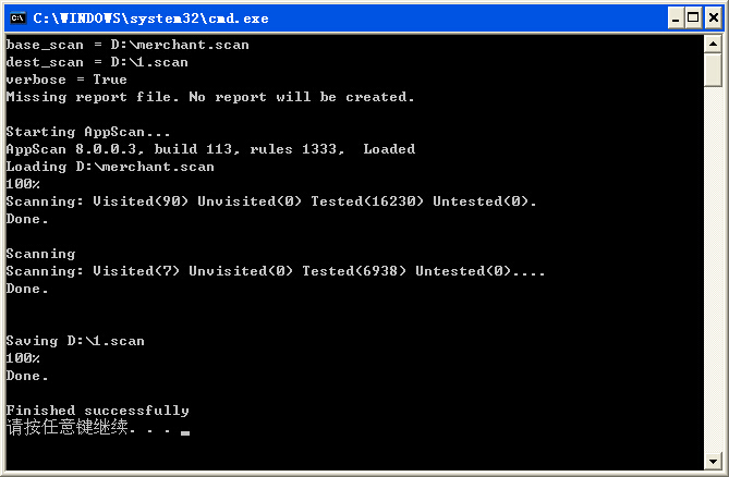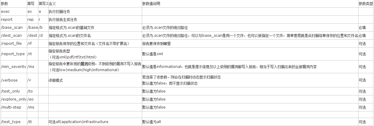 厂商把这个小工具提供出来的意思可能是方便用户在命令行下调用appscan实现自动化扫描的。它的功能分为:执行扫描任务和生成扫描报告两块。
