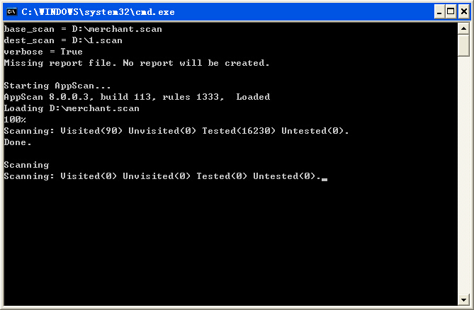 appscancmd无法跟wvs_console一样直接用命令行选项来设置扫描参数,appscancmd的扫描必须基于一个base_scan,目的是为了读取扫描参数。