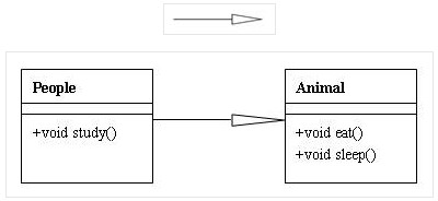 继承表示类与类(或者接口与接口)之间的父子关系。在java中,用关键字extends表示继承关系。UML图例中,继承关系用实线+空心箭头表示,箭头指向父类。