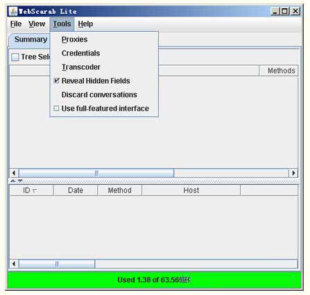 需要将其更改为Full-Featured Interface模式,勾选上图中的【use Full-Featured Interface】,重新启动WebScarab,界面如下,多了很多功能选项:
