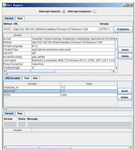 WebScarab说白了是一个代理工具,他可以截获web浏览器的通信过程,将其中的内容分析出来,使你很容易修改,比如我发一个submit请求,WebScarab首先截获到,不急着给真正的服务器,而是弹出一个窗口让你可以修改其中的内容,修改结束了再提交给服务器,如果网页的输入框进行了一些限制,如长度限制、数字格式限制等,只能使用这种方式进行修改了;它也可以修改服务器返回的response,这可以过滤掉一些对客户端进行限制的js等。这是OWASP的另一利器。