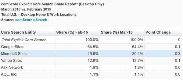 考虑到微软必应同时还为雅虎搜索提供支持,因此实际上有30.9%的搜索都是由微软必应驱动的。