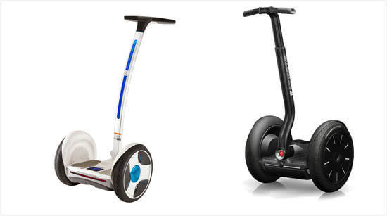 右边是电动平衡轮的开山鼻祖,来自国外的segway。左边则是国内的Ninebot。可以看到两种产品相似度极高,区别大的或许是价格,segway在6000美元左右,Ninebot只需要3000美元。
