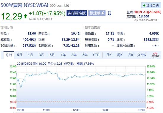 4月6日晚间消息,受暂停所有彩票销售影响,500彩票网周一盘前股价大跌。截止北京时间4月6日18:30分,500彩票网在盘前交易中,股价大跌1.3美元,暂报10.99美元,跌幅为10.58%。