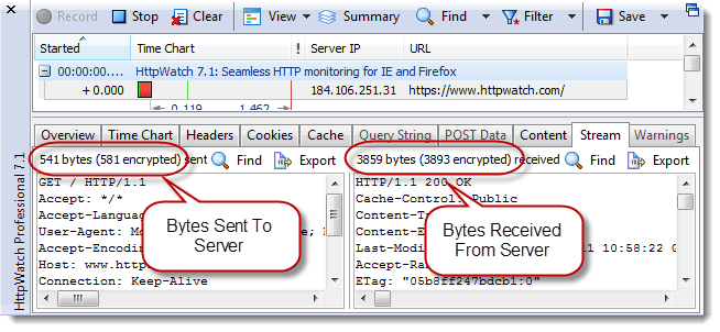 其次,建立HTTPS连接,要求额外的TCP往返,因此会新增一些发送和接收的字节。但是,从下图可以看到,新增的字节是很少的。