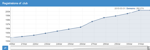 2015年4月1日-弗罗里达劳德代尔堡讯:来自美国、德国、中国及其他十几个的统计数据显示,新域名后缀.club的注册量以超过20万个。距离2014年5月7日的公开发售日期还不到一年,.CLUB如此亮眼的销售成绩在新域名市场是极为罕见的。
