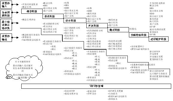 IEEE给出的验证和确认过程可以用下图来表示。验证和确认是一个广泛的概念,感兴趣的读者可以参考IEEE Std 1012-1998。