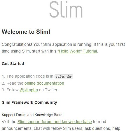 出现主页面,正常,slim框架几百k,用起来还是不错的。