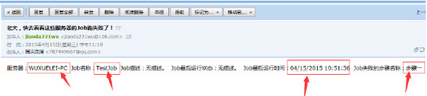 另外,因为我只建立了一个失败的Job,所以邮件中只是发送一个条。