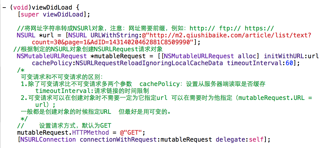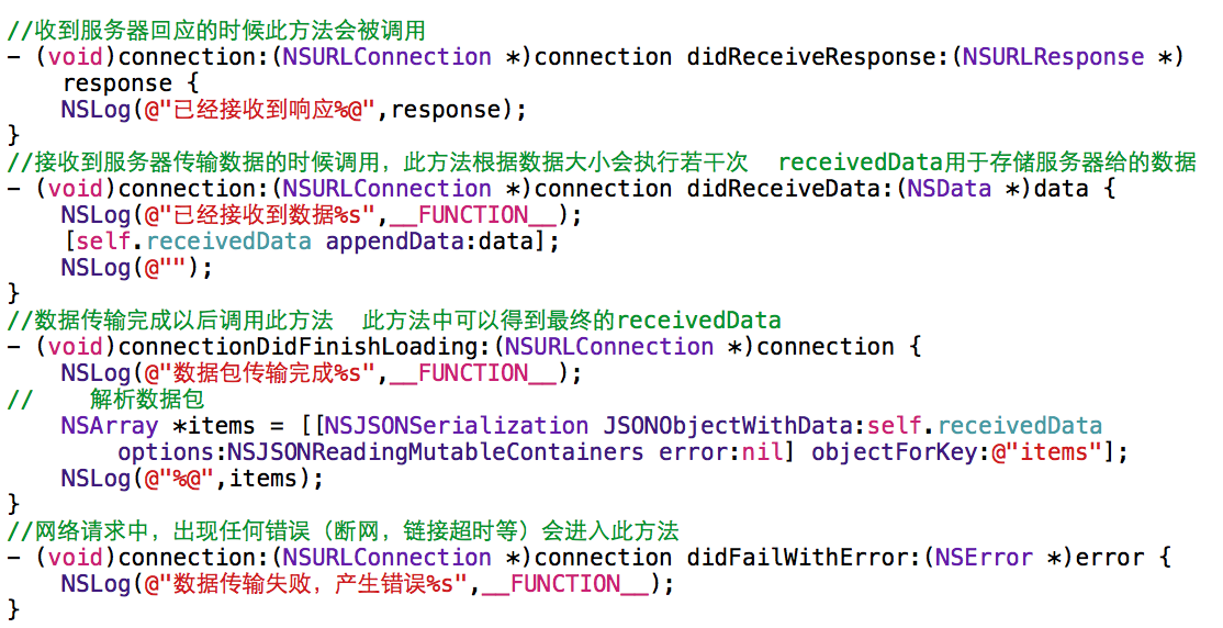 实现相应的代理方法:开始响应接受数据、接收数据 、成功、失败