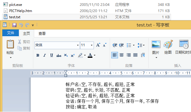 我们知道成对组合覆盖这一概念是Mandl于1985年在测试Aad编译程序时提出来的。Cohen等人应用成对组合覆盖测试技术对Unix中的“Sort”命令进行测试。测试结果表明覆盖率高达90%以上。可见成对组合覆盖是一种非常有效的测试用例设计方法。但是实际工作过程中有成对组合量太大,PICT很好的解决了这一难题。