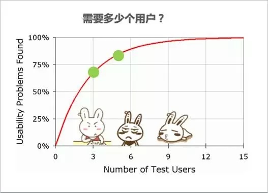 a. 找多少用户。 对于快速的可用性测试,到底应该找多少用户来测试,说到这里,可以参考Nielsen的这张经典图表,可能对于用户数量业内有很多的争议,我个人的项目经验来说,一般发现产品的重大问题的话,6~8个用户足够了,而对于验证型的测试,可根据测试结果及时调整数量,一般也会控制在12人左右,基本上符合了Nielsen的理论。