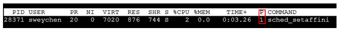 编译之后运行程序,输入命令top -p 进程id,输入f,输入j,输入回车,可以看到进程在cpu0123之间不停切换。